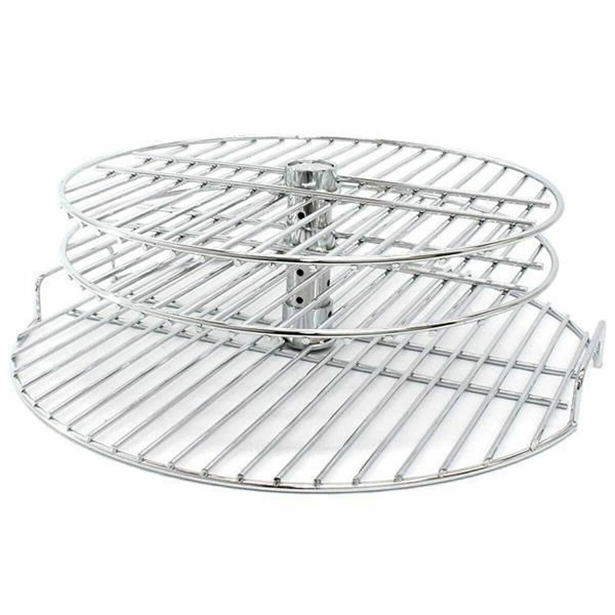 De Big Green Egg grillverhoger is gemaakt van roestvrij staal en bestaat uit 3 lagen. Het onderste rooster is een vast rooster met daarboven 2 roterende en in hoogte verstelbare roosters. Hoe hoger u de ingrediënten legt, hoe verder zij van de directe gloed zijn verwijderd. De grillverhoger is geschikt voor gebruik in de Big Green Egg Large.