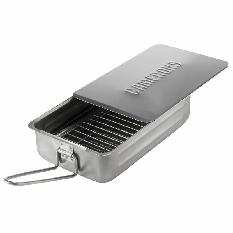 De Camerons rookoven is vervaardigd uit roestvrij staal en is voorzien van een lekplaat en rooster. De rookpan heeft een lengte van 38 cm en een breedte van 28 cm. Gebruik de Camerons voor het roken van vlees, vis of gevogelte.