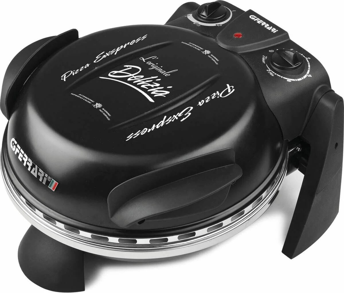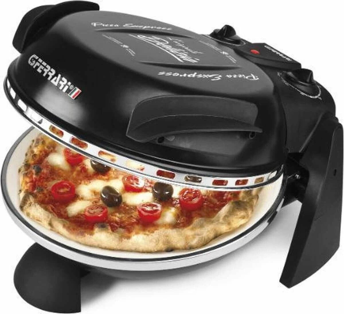 De zwart elektrische G3 Ferrari pizzaoven is van ijzer en heeft een vermogen van 1200 W. Op de ovensteen kunt u pizza’s, taart of broodjes bakken die een diameter hebben tot 31 cm. De oven kent 5 warmtestanden met een hittebereik tot 400°C en heeft de volgende afmetingen: 33,5 x 20 x 35 cm (l x h x b).