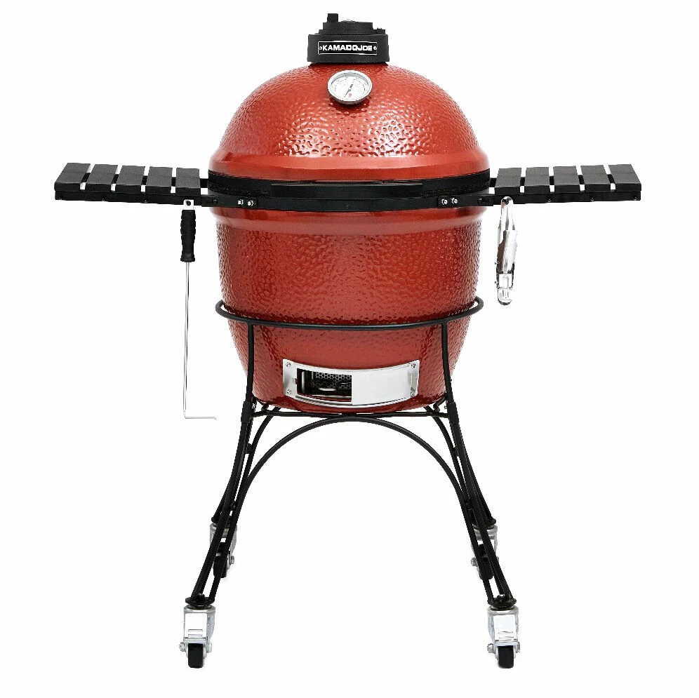 De Kamado Joe Classic is een kamado die het hele jaar door buiten gebruikt kan worden. De rode, eivormige barbecue is verkrijgbaar in diverse maten en met veel mogelijke accessoires. De warmte in de barbecue wordt goed vastgehouden en verdeeld dankzij de keramische wanden en de unieke vorm van de kamado. De temperatuur kan eenvoudig ingesteld worden op een temperatuur tussen 107°C en 400°C. De buitenzijde van de barbecue blijft relatief koel, externe temperaturen hebben geen invloed op de temperatuur binnen in de Kamado Joe. De temperatuur is eenvoudig af te lezen om de ingebouwde thermometer in de koepel. De pakking van glasvezelgaas, die wel tien keer zo lang meegaat als de gewone, industriële pakkingen, zorgt dat er nog minder warmte verloren gaat.