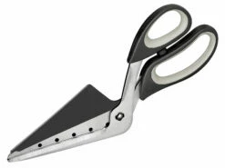 De Küchenprofi pizzaschaar heeft bladen van 13,5 cm en is in zijn geheel 27,5 cm lang. De van roestvrij staal gemaakte schaar is voorzien van extra scherp lemmet waardoor zelfs rijk gevulde pizza’s en quiches gemakkelijk in stukken te snijden zijn. De schaar heeft een driehoekig serveervlak in de vorm van een taartschep om punten pizza gemakkelijk te serveren.