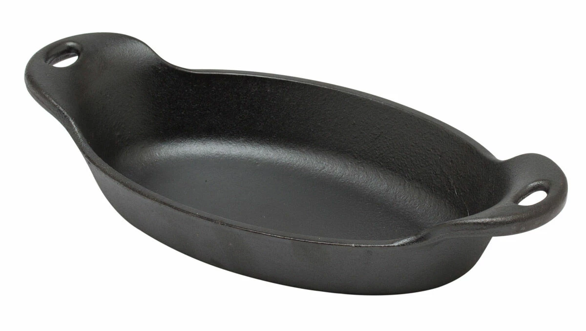 De Lodge Logic ovale serveerschaal is gemaakt van ongeëmailleerd gietijzer en heeft diameters van 20,5 en 10,7 cm. De schaal is te gebruiken op alle hittebronnen, inclusief de barbecue, de oven en open vuur. Gebruik de schaal voor het bereiden en serveren van kleine gerechten.