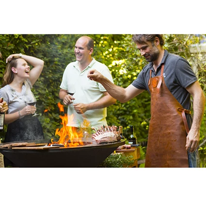 Gebruik het leren schort van OFYR om uw kleding te beschermen bij het bakken aan de OFYR. Het leer biedt enige bescherming tegen de hitte en het spatten van het vuur en eten. Door de verstelbare nekband en tailleriem is de ideale pasvorm te bereiken.