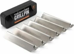 The Bastard Grill Pins zijn gemaakt van roestvrijstaal en komen in een set van 6 met elk een lengte van 15 cm. U kunt de pins samen gebruiken als grillverhoger, spareribrek, saté houder en nog veel meer. De Grill Pins komen in een handige bewaardoos.