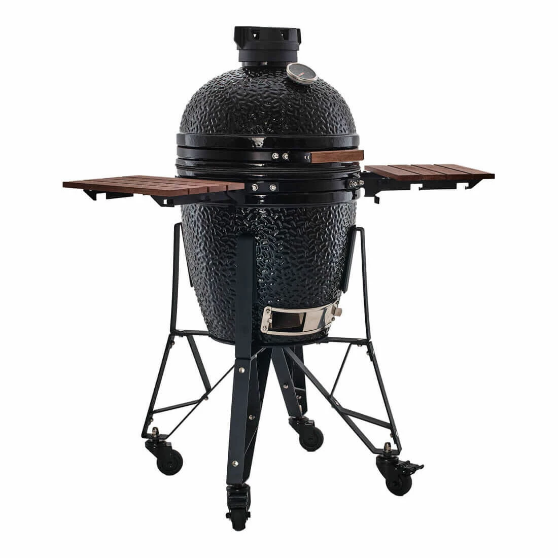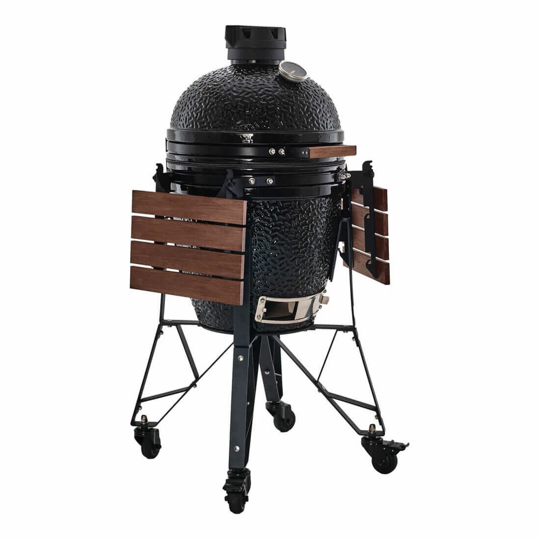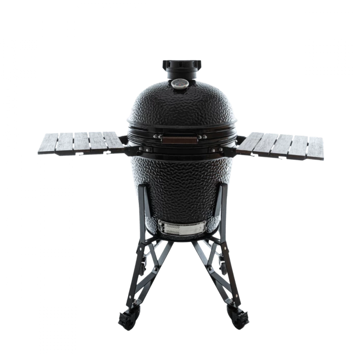 De The Bastard Model 2022 is een eivormige houtskoolbarbecue, leverbaar in verschillende maten. De barbecue is gemaakt van keramiek. Dit zorgt ervoor dat de warmte goed wordt vastgehouden, stabiel blijft en dat de buitenzijde tijdens gebruik koel blijft. U regelt de temperatuur eenvoudig dankzij 2 verschillende luchtinlaten en de temperatuur is tevens duidelijk af te lezen op de thermometer in de deksel. Gesloten zorgt de vorm van de kamado voor een specifieke luchtcirculatie. Deze luchtcirculatie, convectie, neemt smaakelementen van het houtskool mee en zorgt voor een gelijkmatige garing en warmteverdeling. Zowel aan de boven- en onderzijde van ingrediënten.