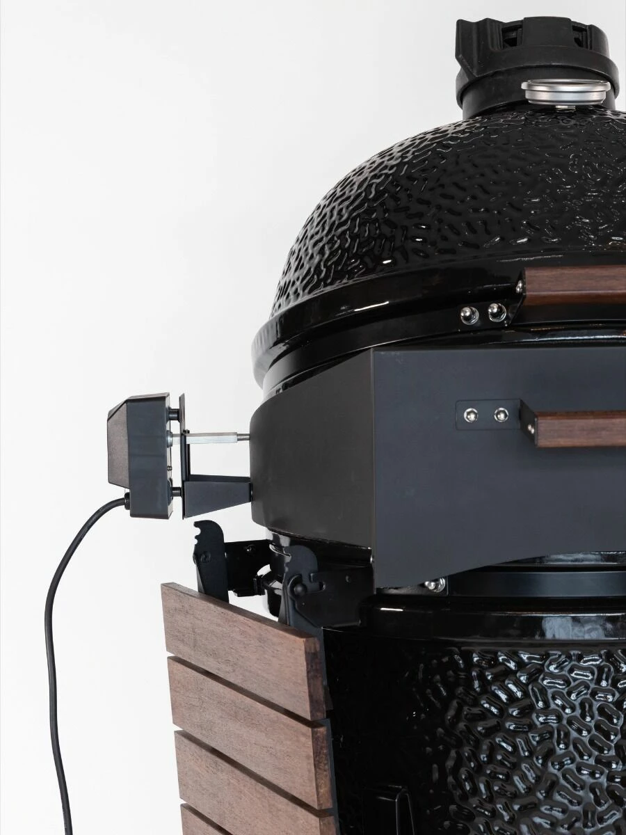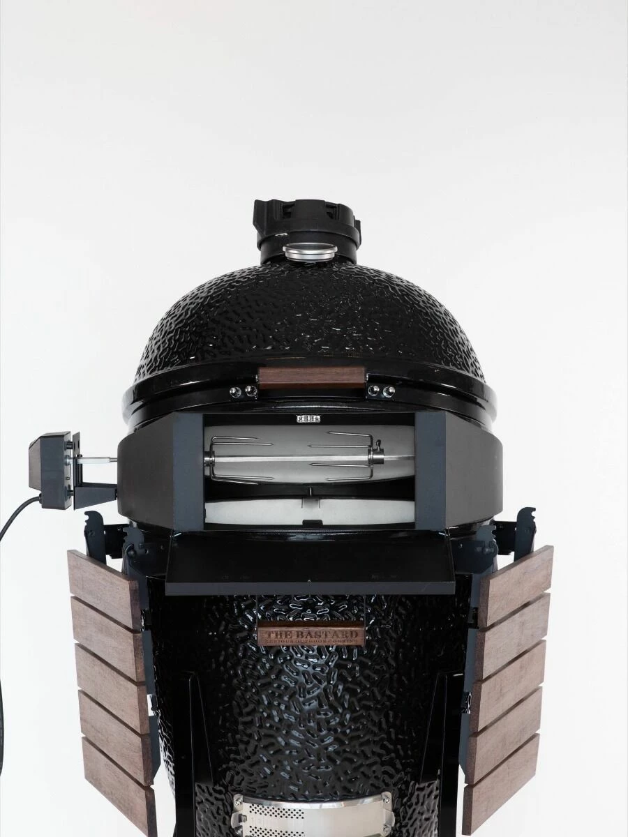 Met de The Bastard pizza-rotisserie kunt u zowel grote stukken vlees draaiend en gelijkmatig garen als knapperige pizza’s bakken. De accessoire is gemaakt van dubbelwandig materiaal wat zorgt voor een goede warmte-isolatie.